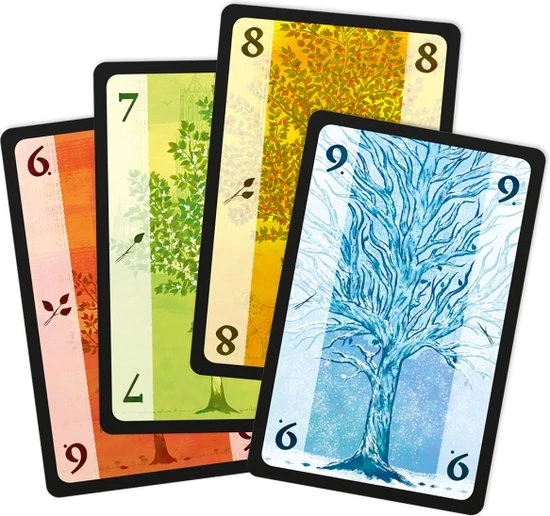 Tactisch slagenspel voor 3 of 4 spelers Voorspel met 2 of 3 kaarten uit je hand hoeveel slagen je gaat halen. Elk seizoen heeft daarbij een vaste slagenwaarde. Het lieveheersbeestje zorgt voor de nodige verwarring en verrassing. Ben je heel zeker van je zaak, dan kun je zelfs een “seizoenen”-bod doen, waarbij je de andere spelers laat zien hoeveel slagen je wilt halen. Dat kan een fijne bonus opleveren. Haal je het echter niet, dan krijgen de andere spelers juist een bonus. Four Seasons kan met 3 of 4 spelers individueel worden gespeeld, maar de handleiding bevat ook spelregels voor een spannende en interessante teamvariant. Teamgenoten kennen elkanders voorspelling, waardoor ze elkaar kunnen helpen. Uiteraard krijgen ze meer bonuspunten als ze allebei hun voorspelling weten te halen. Four Seasons is één van de weinige kaartspellen waarbij geluk maar een marginale rol speelt!