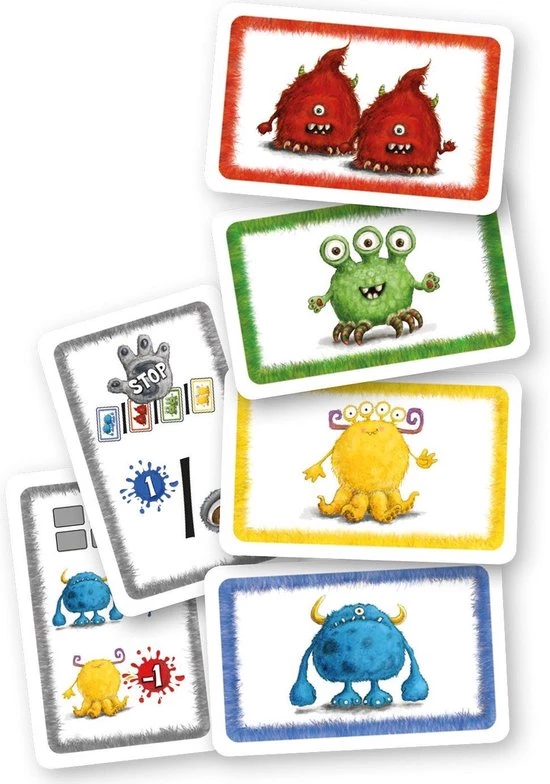 Vlot geheugenspel voor de hele familie. Je hebt een blok van 4 bij 4 gedekte monsterkaarten en probeert steeds de verschillende opdrachten zo goed mogelijk uit te voeren. Je draait steeds een aantal monsters uit je blok om, waarbij het ene monster meer punten waard is dan het andere. Naarmate het spel vordert, ken je de locaties van je monsters steeds beter, als je je geheugen tenminste goed gebruikt. Na elke opdracht moet je de openliggende monsters namelijk weer omdraaien. Om spelers met een minder geheugen te helpen, moet de winnaar van een ronde een kaart uit zijn blok verwijderen, terwijl de verliezer er een zwervend monster bij krijgt. Wie heeft na 10 opdrachten de meeste punten?