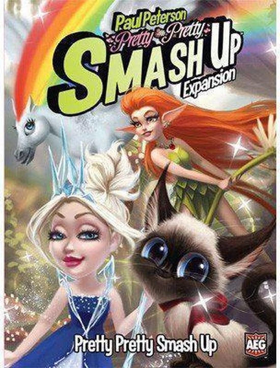 Dacht jij dat alleen piraten, tijdreizigers, vampieren en beren verwoestend kunnen zijn? Dan brengt Pretty Pretty Smash up daar verandering in: deze expansieset voor Smash Up biedt spelers de meest lieve en schattige facties die echter op een slinkse wijze strijden voor de overwinning! Dit zijn geen katjes om zonder handschoenen aan te pakken! De Kitty Cats gebruiken hun ongelofelijke schattigheid om controle te nemen over de vijanden. Prinsessen gebruiken hun looks en toverfee?n hebben magische trucs om hun zin te krijgen!