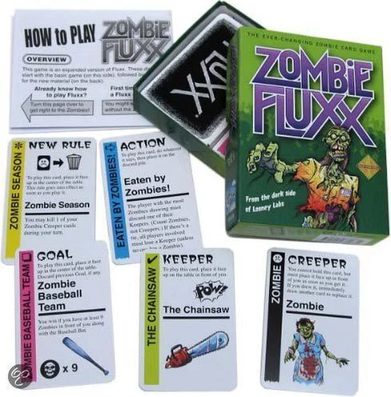 Zombie Fluxx neemt het award-winnende kaartspel Fluxx naar het volgende level, of beter gezegd naar de onderwereld! Deze zombie variant van Fluxx heeft een nieuwe type kaarten genaamd “Creepers”.