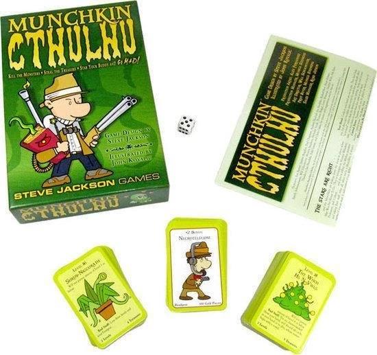 Munchkin Cthulhu is het nieuwe stand-alone Munchkin spel. In eerdere Munchkin spellen hebben de Munchkin zich door kerkers, kung-fu tempels, ruimteschepen en spookhuizen gevochten. Nu komen ze hun grootste uitdaging tot nu toe tegen: Cthulhu! Dit betekent: Munchkin Madness! Zullen de Munchkins het overleven? En zullen ze tussentijds niet gek worden en doordraaien?In deze Munchkin versie draait het om Lovecraft’s Mythos en de horror en waanzin die daarbij hoort. De speler krijgt 4 nieuwe rassen – inclusief Cultist – en vele oude monsters. Uiteraard weer met artwork van John Kovalic.Munchkin Cthulhu kan als stand-alone spel gespeeld worden, maar ook tezamen met de andere Munchkin spellen voor nog meer variatie. De set bevat 168 kaarten, een zeszijdige dobbelsteen en een rulesheet.