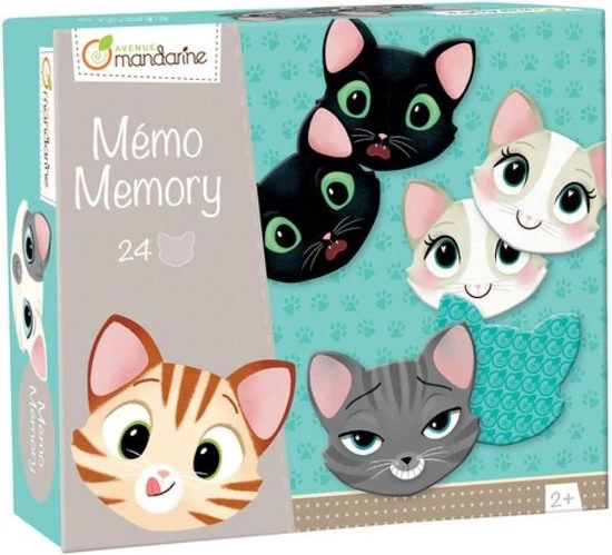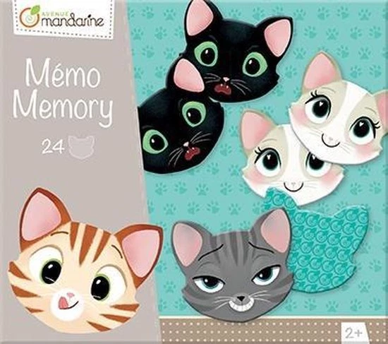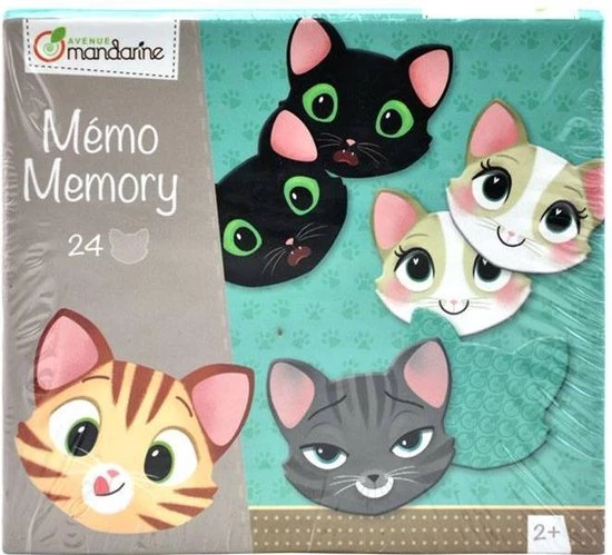Een ludiek memoryspel van het Franse merk Avenue Mandarine met kattensgezichtjes en expressies.
