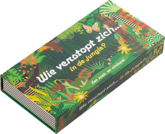 Kies een landschapskaart, het maakt niet uit welke! Kies dan een dierenkaart. Met ??n landschapskaart en ??n dierenkaart is er altijd maar ??n dier dat op beide kaarten voorkomt. Kun jij die als eerste vinden? Heerlijke dierenillustraties en jungletaferelen van de hand van Caroline Selmes. Met Wie verstopt zich in de jungle? houd je het hele gezin zoet!