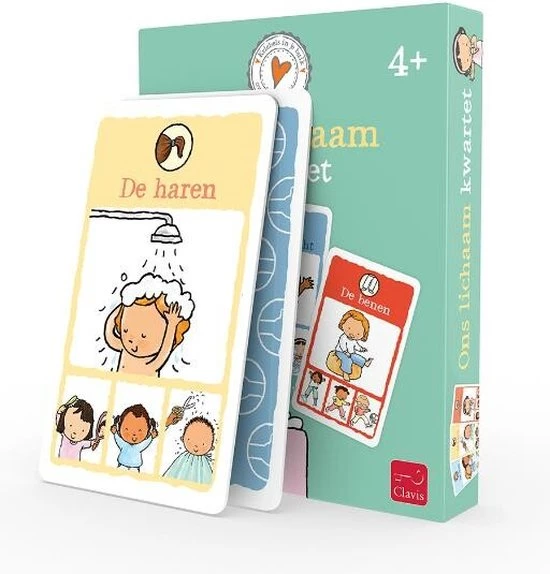 Dit speldoosje bevat 32 kwartetkaarten en 8 praatkaarten. Het spel is geschikt voor 2 tot 4 spelers vanaf 4 jaar en sluit aan bij de boekenreeks Kriebels in je buik van Pauline Oud. Spelenderwijs verwerven kinderen inzicht in hun eigen lichaam én die van een ander. Daarnaast leren ze dankzij de praatkaarten om hun ervaringen te verwoorden en naar elkaar te luisteren.