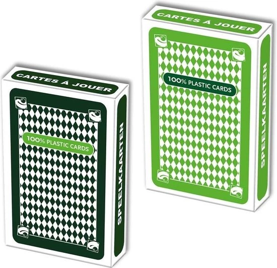 | Verpakkingsinhoud | Inhoud:, 1, pak, kaarten, in, donkergroen, en, 1, pak, kaarten, in, lichtgroen. |