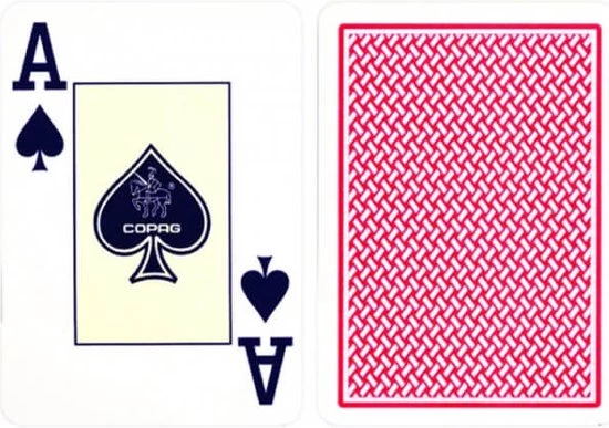 COPAG wordt beschouwd als d? ultieme pokerkaart. Doordat deze kaarten van 100% PVC plastic zijn gemaakt, zijn ze beter bestand tegen gebruikssporen, in tegenstelling tot kartonnen speelkaarten. Probeer je een COPAG kaart te plooien, springt deze terug naar haar oorspronkelijke kaarsrechte vorm, zonder markeringen te vertonen. Praktisch dus voor pokerspelers die enkel met de peak index werken. Een COPAG kaart glijdt ook vloeiend over een pokertafel wanneer de kaarten worden gedeeld, en de kaarten shufflen gaat als vanzelf doordat ze zo mooi in elkaar schuiven. Desalniettemin hebben de COPAG kaarten een achterkant waar wat textuur in zit, zodat ze de grip ook verbeteren ? handig voor zowel de dealer als de spelers.