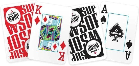 Pervente pokerspelers dromen maar wat graag om deel te nemen aan de WSOP – the world series of poker. Met deze offici?le pokerkaarten, ben je alvast een stapje dichter. In het stevige kartonnen doosje met magneetsluiting zitten 2 decks Copag plastic pokerkaarten met jumbo index. Word een poker sterspeler dankzij deze offici?le pokerkaarten.