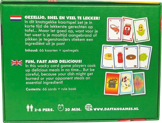 Naast de ingredi?ntkaarten zijn er ook speciale kaarten te vinden. Jokerkaarten kun je gebruiken om je gerecht compleet te maken en pestkaarten om je tegenstanders een hak te zetten.
