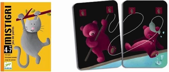 Mistigri is een Pieten kaartspel van Djeco, waarbij verschillende kaarten paren aan elkaar gekoppeld moeten worden zónder dat de kat gered wordt.