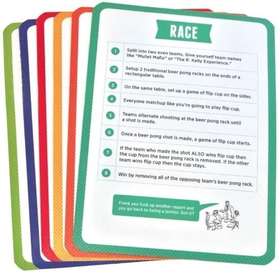 – Games are perfect for a group looking to have a few drinks or not! Most games can be played without alcohol.