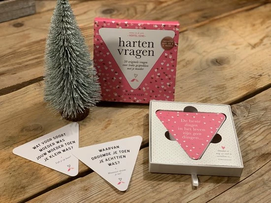 Op veler verzoek introduceert bestsellerauteur Elma van Vliet een nieuwe manier om mooie gesprekken op gang te brengen: Vertel Eens Hartenvragen. Met deze mooi vormgegeven vraagkaartjes ontdek je alles wat je altijd al wilde weten over je moeder. Wat voor soort moeder was jouw oma? Wat vindt je moeder belangrijk in een relatie? Wie was de superheld van je moeder toen zij klein was? De vragen zorgen op een luchtige manier voor een bijzonder en persoonlijk gesprek. Vertel Eens Hartenvragen zijn leuk om te stellen tijdens een avond samen of om als losse kaartjes mee te nemen op een wandeling of dagje uit. Met de vraagkaartjes heb je net wat andere gesprekken dan normaal, en dat zorgt voor meer diepgang in de relaties met de échte belangrijke mensen in je leven.