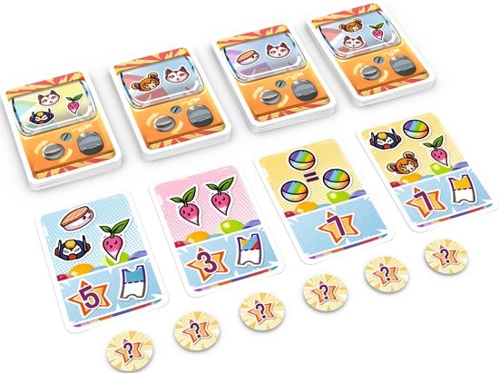 Wie kent die automaten met speeltjes in plastic ballen nou niet? Het is altijd spannend wat je zal krijgen. In Gasha beleef je die spanning in een gestroomlijnd verzamelspel dat leuk is voor jong en oud. Elke beurt trek je 2 kaarten. Op de achterkant van elke kaart zie je welke speeltjes je kunt krijgen. Kies de goede automaten en vorm van de speeltjes die je krijgt setjes die je kunt inwisselen voor punten en bonussen.