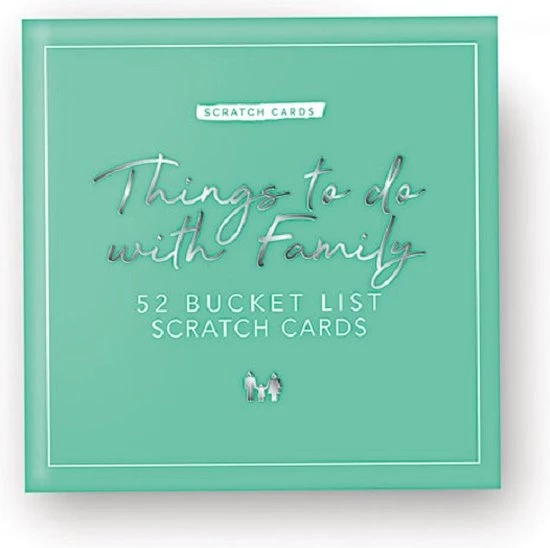 Deze 52 kraskaarten van Gift Republic zitten boordevol dingen die jij en je gezin samen kunnen doen. Kras de voorkant op elke kaart open om je mysterieuze activiteit te onthullen! Op de achterzijde kun je details van de activiteit schrijven.