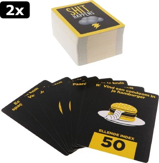 Shit happens.. Ja het leven valt niet mee.. Shit Happens is een hilarisch en weerzinwekkend, maar levensecht partyspel. Je komt allerlei ongewenste situaties tegen die je moet rangschikken op je ‘lane of pain’ die loopt van 1 tot 100. Wat is erger? Je vader in z’n nakie zien of elke nacht in bed plassen?
