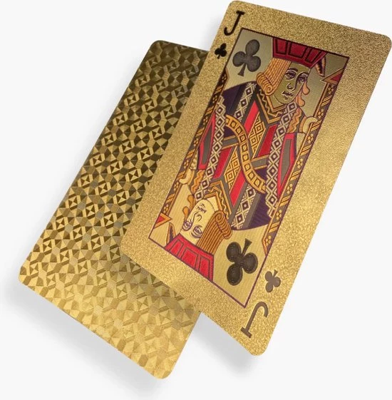 Het kaartspel bestaat uit 56 gouden en waterbestendige speelkaarten. De kaarten zijn waterbestendig doordat deze van pvc zijn gemaakt i.p.v. karton of andere materialen. Hierdoor kun je de kaarten gemakkelijk schoonmaken door ze bijvoorbeeld af te spoelen onder de kraan en blijven de kaarten heel als er per ongeluk drank of vloeistof overheen wordt gemorst.