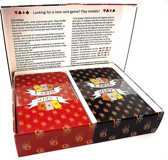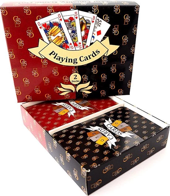 De kaarten zijn beschikbaar in een zwarte en een bordeaux rode set. Je kunt ze als enkele of als dubbele verpakking aanschaffen.