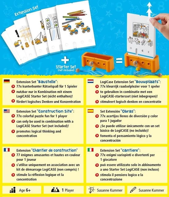 Kleurrijk, uitdagend, afwisselend – dat zijn de Logic! CASE-raadselsets. Het doel is om de meest uiteenlopende opdrachten te ontgrendelen en op te lossen. De speler kan zijn/haar antwoord zelf controleren met de houten pin. Kan men de kaart eruit trekken of niet? Dit versterkt de motivatie en vaardigheid om een probleem zelfstandig op te lossen. Is een raadsel opgelost? Dan wacht de volgende uitdaging al! Met de Logic! CASE-uitbreidingssets kunnen de starterssets eenvoudig en flexibel worden uitgebreid op basis van thema en moeilijkheidsgraad. Zo blijft het altijd spannend!
