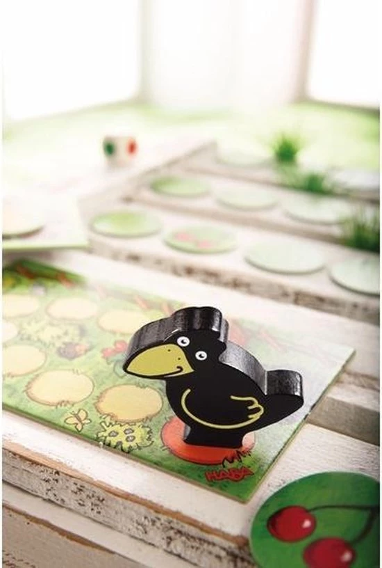 Een cooperatief geheugenspel. Alarm! De brutale raaf staat op het punt jullie lekkernijen weg te kapen. Verzamel al het fruit door de bij de gegooide kleur passende vruchten om te draaien. Het doel van het spel is om al het fruit te verzamelen voordat de raaf alles van jullie wegkaapt. Vanaf ca. 3 – 99 jaar 1 – 4 spelers Spelduur ca. 10 – 15 minuten