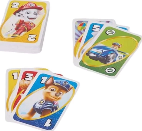 Dit vereenvoudigde UNO® Junior-kaartspel voor jongere spelers zit boordevol afbeeldingen uit de geanimeerde Paw Patrol-film, met dierenhelden zoals Chase, Skye, Marshall, Liberty en hun menselijke leider, Ryder. Dankzij drie spelniveaus kan het spel gelijke tred houden met de ontwikkeling van een kind. Niveau één is eenvoudig matchen. Niveau twee voegt Reverse- en Skip-kaarten toe aan het plezier, en Level Three bevat Draw 1- en Draw 2-kaarten om het tempo echt op te voeren. Net als bij het gewone UNO®-spel, racen spelers om al hun kaarten kwijt te raken door ze te matchen met de kaart bovenaan het kaartspel, hetzij op kleur, nummer en (vooral handig voor jongere spelers) op KARAKTER! Chase komt overeen met Chase en Marshall komt overeen met Marshall. Als je nog maar één kaart hebt, vergeet dan niet “UNO!” te roepen. Ontworpen voor kinderen van 3 jaar en ouder. Kleuren en decoraties kunnen variëren. Functies: Het is het UNO®-spel waar iedereen van houdt, maar vereenvoudigd, zodat kinderen van 3 jaar en ouder kunnen spelen! Op elk van de kaarten staan afbeeldingen uit de voorschoolse film PAW Patrol. De nummerkaarten hebben een bijpassende karakterafbeelding, zodat kinderen die hun nummers nog niet kennen, toch kunnen spelen! Chase komt overeen met Chase en Skye Niveau één is eenvoudig matchen, niveau twee introduceert actiekaarten aan het kaartspel en niveau drie voegt strafkaarten toe aan de mix. Als een speler nog maar één kaart heeft, moet hij “UNO!” roepen. Geen pup is te klein! UNO® Junior PAW Patrol biedt plaats aan 2 tot 4 spelers van 3 jaar en ouder, maar dankzij de aantrekkelijke graphics met ezelsoren wil iedereen spelen! UNO® Junior PAW Patrol-kaartspel voor kinderen vanaf 3 jaar Bevat 56 kaarten en instructies.