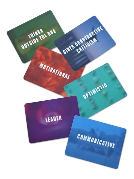 This game distinguishes itself with respect to other coaching cards as both sides of the card are useful. This makes it actually two games-in-one. This box contains 60 coaching cards with which you can answer several questions in a creative way. Questions such as ?How are you feeling at the moment?? or ?Which card characterises your team??. A successful and inspiring aid to help people play an active role in their own development and that of a team. On one side there is a photo and on the other side a quality. The cards help you to answer questions relating to many different contexts more easily. An inspiring game for trainers, coaches and managers who consider it important to be aware of one?s qualities and who like to creatively stimulate people to think.