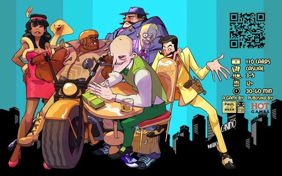 De resource kaarten bestaan uit gangsters en uit invloedkaarten. Deze gangsters hebben een bepaalde statuswaarde en een speciale actie. De crimes kaarten hebben diverse misdaden die gepleegd kunnen worden (roof, gokken, fraude of smokkel). Hierop vinden we de buit wanneer de crime wordt gewonnen.