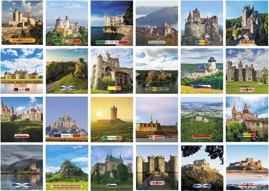 Kastelen 2021 Memory Game, 70 kaarten gerelateerd aan diverse kastelen in Europa. Huurdies memory kaarten kwaliteit is prachtig, omdat ze in eigen huis geproduceerd worden.