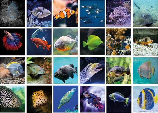 Vissen 2021 Memory Game, 70 kaarten gerelateerd aan diverse vissoorten. Daag je geheugen uit! Huurdies memory kaarten kwaliteit is prachtig, omdat ze in eigen huis geproduceerd worden.