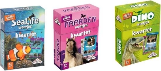 Dit weetjes kwartet is niet alleen een leuk spel.. het is ook nog erg leerzaam. Het Sealife Weetjeskwartet gaat over de dieren uit zee?n en oceanen, afgebeeld op extra grote kaarten.Op deze kaarten staan foto’s en ook nog eens interessante weetjes! Met een superkwartet van 5 kaarten! Hoe oud kan een dolfijn worden? Hoe snel kan een inktvis zwemmen? Hoe zwaar kan een walvis worden?