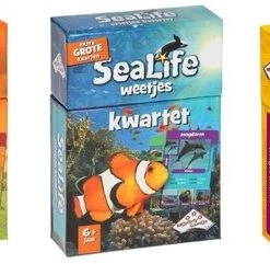 Dit weetjes kwartet is niet alleen een leuk spel.. het is ook nog erg leerzaam. Het Sealife Weetjeskwartet gaat over de dieren uit zee?n en oceanen, afgebeeld op extra grote kaarten.Op deze kaarten staan foto’s en ook nog eens interessante weetjes! Met een superkwartet van 5 kaarten! Hoe oud kan een dolfijn worden? Hoe snel kan een inktvis zwemmen? Hoe zwaar kan een walvis worden?