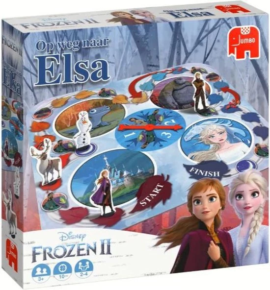 maak je klaar om te beginnen aan de reis van je leven ! De eerste speler die het einde bereikt en herenigd met Elsa, wint de spel! Lukt het jou om Elsa als eerste te bereiken ? Onderweg ontmoet je nieuwe vienden, maar pas op voor de verraderlijke wind en andere obstakels die je proberen te vertragen, ‘ Op weg naar Elsa’ is een spannend spel voor jonge avonturiers, ben je klaar voor?