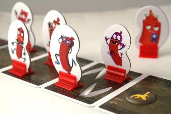 In de worstenfabriek is er iets fout gelopen en er is een batch met slechte worsten geproduceerd. Ze hebben deze worsten op de transportband richting de vleesverwerker gesmeten, maar daar zijn de worsten tot leven gekomen en rennen ze voor hun leven om aan een gewisse dood te ontsnappen.??In het begin van het spel krijg je twee geheime identiteiten (slechts 1 met 5 of 6 spelers). Elke beurt speel je ????n van je drie handkaarten en daarna trek je er een nieuwe. De kaarten laten je toe om de worsten (ook die van andere spelers) te verplaatsen. Ook zijn er kaarten met Majoor Mosterd en Mevrouw Mayonaise die de plannen wat in de war kunnen sturen. Bovendien zal de wondermooie Miss Ketchup ook nog een oogje in het zeil houden.Als iedereen aan de beurt is geweest, dan wordt de transportband in werking gezet en bewegen alle worsten richting de vleesverwerker. Daarna begint een nieuwe ronde met een nieuwe startspeler. Uiteindelijk zullen de worsten ????n voor ????n in de vleesverwerker vallen. Als je de laatste worst hebt die nog in leven is, ben je de winnaar van het spel. Het kan dus zijn dat je worsten al in de vleesverwerker zijn gevallen, maar dan blijf je gewoon doorspelen.??Vanaf je bent uitgeschakeld, zal je namelijk vooral bezig zijn met je zoete wraak te plannen. De uitgeschakelde spelers proberen een situatie te cre??ren waarbij de laatste worsten op de band samen in de vleesverwerker vallen en dan is er geen winnaar. Dit is echt het Worst Case Scenario! Maar dit is niet zo eenvoudig als het lijkt. Wie zijn de eigenaars van de worsten op de transportband en met wie moet je samenwerken om het Worst Case Scenario te triggeren? Naam Worst Case Scenario Speelduur 10-15 min Aantal spelers 2-6 Leeftijd 8+ Uitgever Jumping Turtle Games Designer Mathias Rossie Soort Kaartspel, Partyspel Taal Nederlands, Frans Taalonafhankelijk Nee Ranking (BGG) 8512