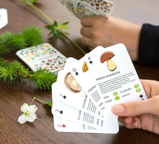 By playing the game, you will experience and learn so much more about the edible and inedible gifts of nature. The game helps you identify and respect what is out there. Go out and see what you can find or recognize, but treat nature kindly! This deck consists of multiple card games in one. Top trumps, with the focus on wild treasures & any regular card playing games.