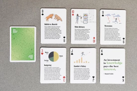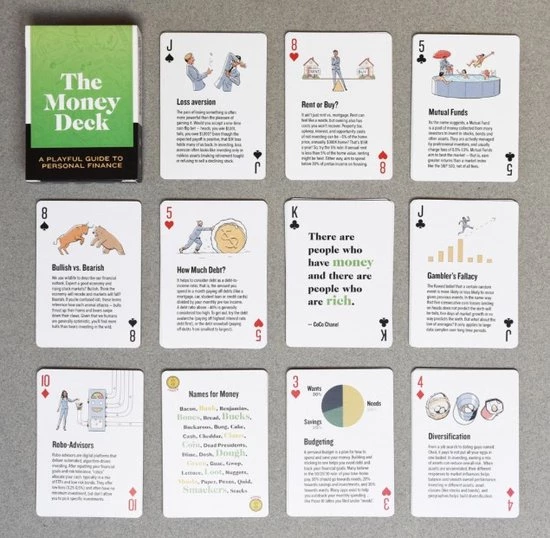 The Money Deck zijn 52 speelkaarten en financiële kennis zit in de kaarten!