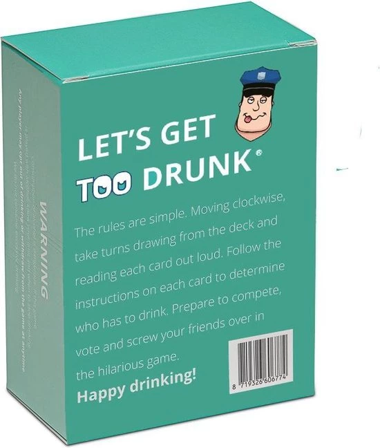 Ga voor goud! Let’s Get Drunk is het meest verkochte drankspel van de BENELUX. Na het succes van Let’s Get Drunk hebben de makers Let’s Get Too Drunk gemaakt! Met Let’s Get Too Drunk voeg je meer spicy & naughty vragen toe aan je huidige dek, Let’s Get Too Drunk is ook als los spel te spelen. Makkelijk te spelen en verveelt niet! De 88 kaarten zorgen ervoor dat jij je vrienden no?g beter kent en een onvergetelijke avond hebt.