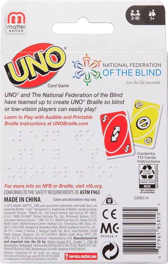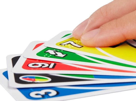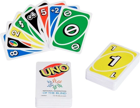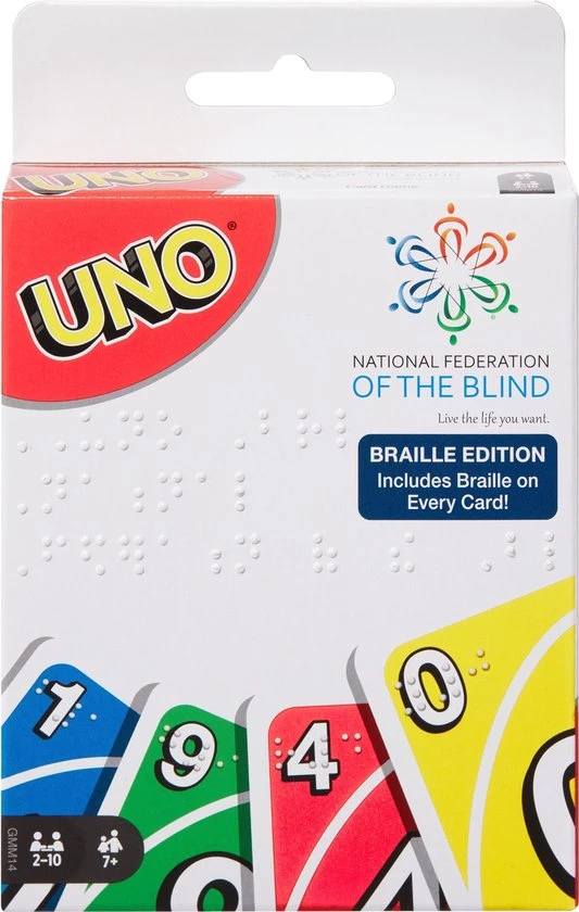 ? UNO? Braille is ontwikkeld in samenwerking met de National Federation of the Blind zodat blinde en slechtziende spelers ook mee kunnen spelen.