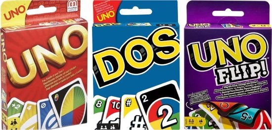 ​Wij van UNO hebben altijd gedacht dat twee beter is dan één. En nu is het dan zover! Als je dol bent op UNO, zul je stapeldol zijn op UNO DOS! In het spel UNO waar je dol op bent, probeer jij (of je team) als eerste 500 punten te scoren. Scoor punten door als eerste speler al je kaarten kwijt te raken. Speel actiekaarten om het je tegenspelers lastig te maken. Dit spel geeft een grappige draai aan het favoriete kaartspel voor het hele gezin. En vergeet vooral niet om “DOS” te roepen als je nog twee kaarten over hebt! Kijk zelf maar waarom dit spel met de gekleurde kaarten al zoveel jaar enorm populair is.