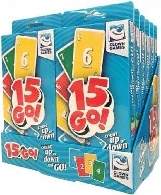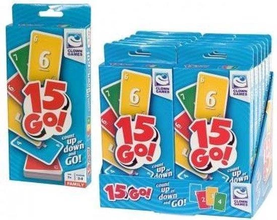 Van de makers van Clown Games RaRa Wat Ben Ik? is er nu een nieuw familiespel 15 Go!. Het doel van dit kaartspel is om zo snel mogelijk al je kaarten weg te spelen, door de cijfers aansluitend weg te leggen. Je maakt rijtjes op tafel, maar je mag de kaarten ook op het stapeltje van je medespeler leggen! Een tactisch spel, waarbij je snel moet handelen en tellen. Met twee speelmogelijkheden: het basisspel ?n een versie voor gevorderden. Wie is als eerste zijn kaarten kwijt en wint het spel? Inhoud van de doos: 120 kaarten en duidelijke spelregels. Voor 2 tot 8 spelers, vanaf 7 jaar.