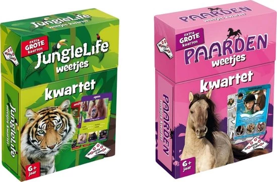 JungleLife weetjes kwartet bestaat uit extra grote kaarten met de mooiste plaatjes ?n weetjes over de betreffende dieren. Dat is leuk en leerzaam. Wie spaart de meeste kwartetten? Geschikt voor kinderen vanaf 6 jaar, 2-4 spelers.