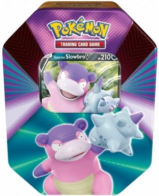 | Verpakkingsinhoud | Pokemon, Spring, Tin, Slowbro, V, 1, foil, Slowbro, V, promokaart, 4, Pokémon, boosters, 1, code, voor, Pokemon, TCG, Online |