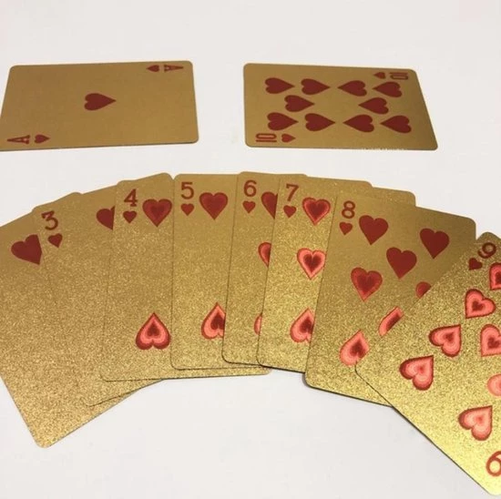 Zin om een potje te kaarten naast het zwembad met een cocktailtje erbij? De glinsterende gouden speelkaarten van Knibe® zijn uitermate geschikt voor deze setting! Zowel het zwembad als de cocktail vormen geen bedreigen voor jouw kaarten. De kaarten zijn namelijk waterdicht en vervagen ook niet bij veel contact met water. Deze kaartenset is ideaal om mee te nemen wanneer je gaat kamperen of ergens aan een strand of zwembad wilt liggen. De kaarten zijn erg buigbaar zonder dat ze beginnen te kreukelen. Daarnaast brengt het glinsterende goud een leuke en interessante flair met zich mee. Ideaal voor een potje poker of blackjack dus!