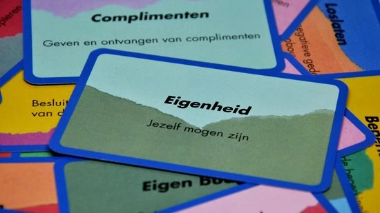 Het spel bestaat uit 2 kaarten met uitleg over de speelwijze, 74 waarden kaartjes met een korte betekenis en 3 kaartjes voor het indelen van de categorie?n: Zeer belangrijk, belangrijk, minder belangrijk.