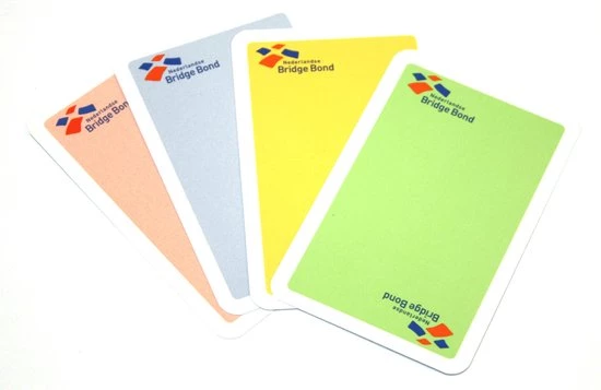 Deze offici?le speelkaarten van de Nederlandse Bridge Bond zijn gemaakt van de superdeluxe kwaliteit 330 grams papier en worden in een set van acht stokken geleverd. Een set bestaat uit twee roze, twee blauwe, twee gele en twee groene stokken kaarten.