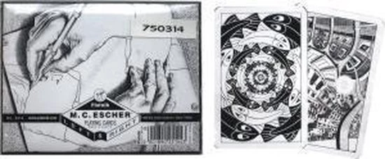 Speelkaarten set Escher Left & Right. Dubbel set verpakt in luxe cassette. Afmeting 89 x 58 mm. Internationale pop. Piatnik. – Formaat Bridge