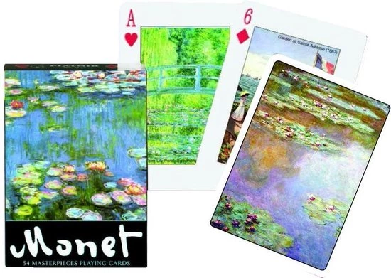 Bridge formaat speelkaarten: 58 x 89 mm. De figuren op de speelkaarten zijn vervangen door schilderingen van Monet.