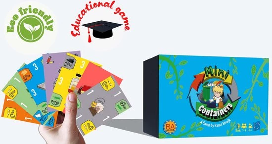 Mini Containers is een educatief en ecovriendelijk geproduceerd spel. Het is een vlot push your luck kaartspel waarbij alle spelers gelijktijdig last van opruimwoede en schoonmaakkriebels hebben. En dat is lastig want bij elkaar willen de spelers heel wat afval afvoeren en de ruimte in de afvalcontainers is beperkt. Als dat maar goed gaat? Door het spelen van Mini Containers leer je spelenderwijs meer over de verschillende soorten afval en word je je meer bewust van het afvalprobleem.
