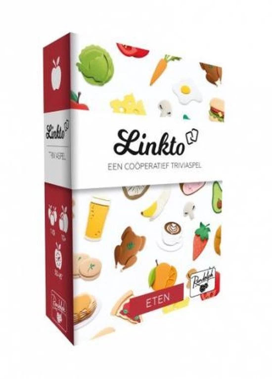 Probeer samen met je medespelers om de juiste Tipkaart te verbinden met de Woordkaarten. Is de resterende woordkaart de sleutel die je zoekt, of zijn de links die jullie hebben gelegd niet juist? Linkto wordt direct beschikbaar in twee versies, namelijk LINKTO ETEN en LINKTO REIZEN! Waar de variant ETEN zich richt op feitjes over etenswaren, is de variant REIZEN meer gericht op informatie over bijzondere locaties Alleen het thema van beide spellen is anders, de regels zijn gelijk.