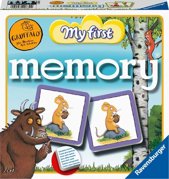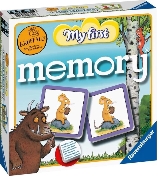 memory? van Ravensburger is al meer dan 50 jaar het meest geliefde eerste spel dat een kind met andere spelen kan… en hoe! Meestal winnen zij gemakkelijk van volwassenen. Daarnaast oefent het kind spelenderwijs belangrijke vaardigheden zoals concentratie en uithoudingsvermogen. Door de grote kaarten van extra dik karton is deze Gruffalo My First memory? al geschikt voor de allerkleinsten.