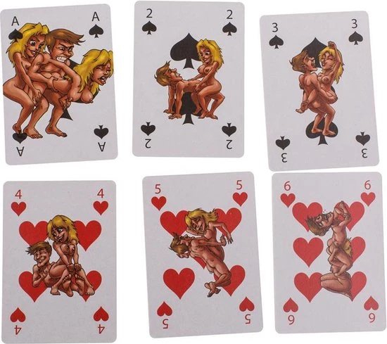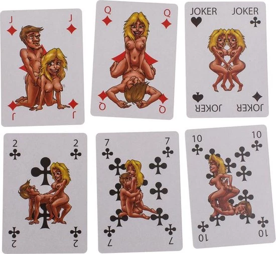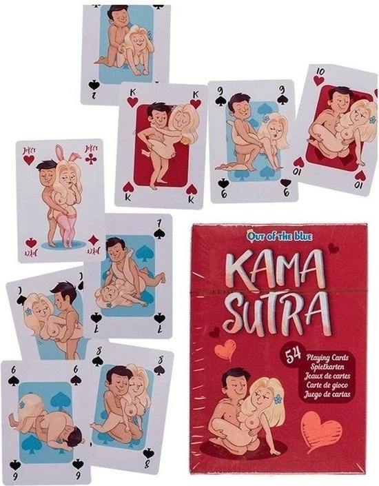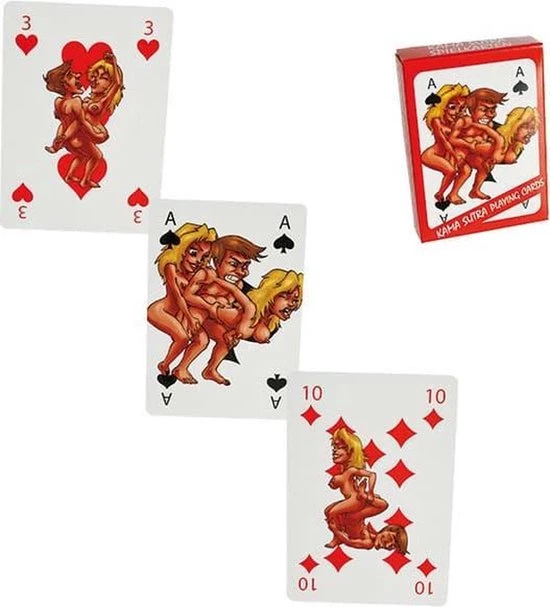 Een pakje van 54 speelkaarten met komische Kamasutra-afbeeldingen. Dit maakt van kaarten een erotisch spel met je eigen spelregels.