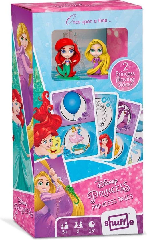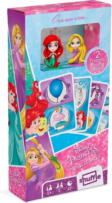 Met dit kaartspel moet beleven Rapunzel en Ari?l spannende verhalen. Aan jou de taak om als eerste de weg terug naar het kasteel te vinden. De prinses die haar kasteel als eerste bereikt, wint het spel! Het spel bevat 55 speelkaarten, twee prinsessenpoppen en een handleiding.