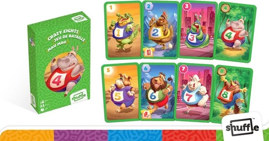 Loop als een gek met deze 8 gekke dieren. Race tegen de andere spelers en speel als eerste al je kaarten weg door de dieren of de achtergronden met elkaar te matchen. Gebruik de speciale acties om als eerste te finishen!